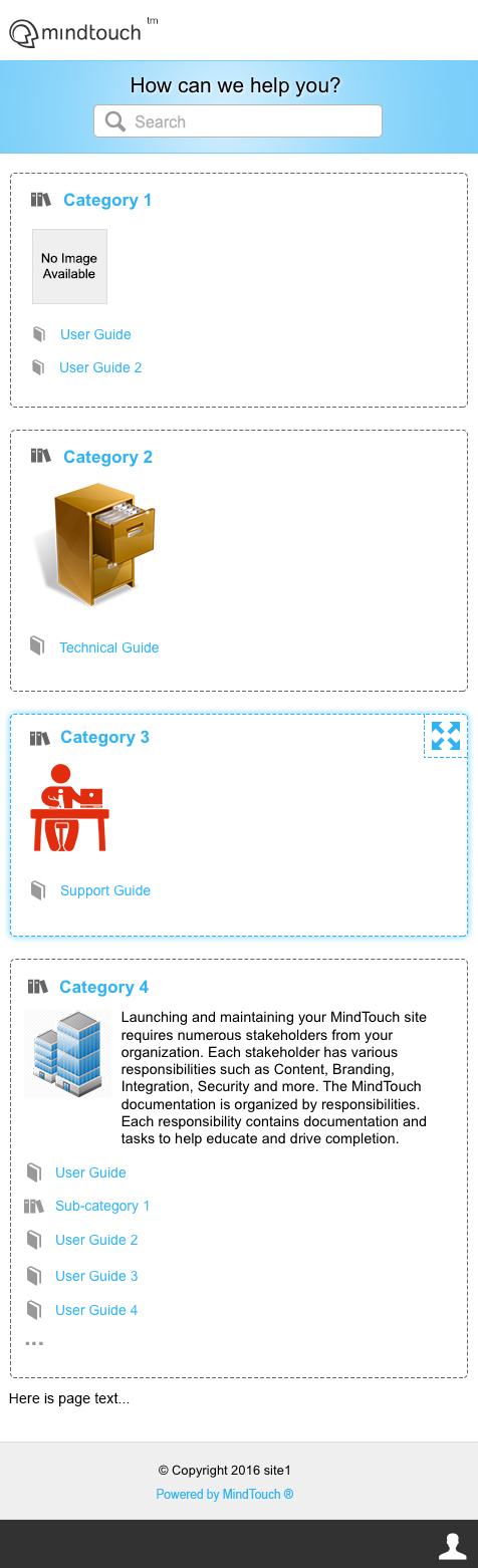 The category with a Detailed view is one of the three recommended page templates for your homepage. These mockups include all supported screen sizes for each type of user: Pro Member, Community Member, and Anonymous.